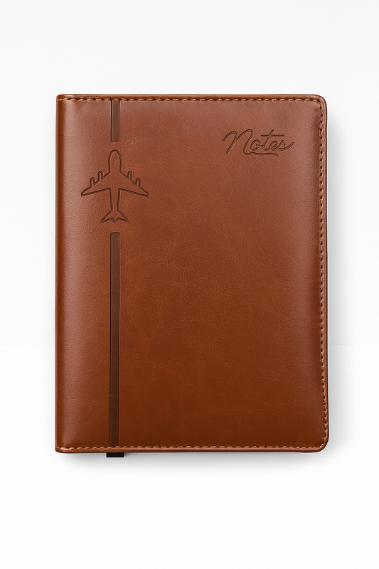 Soft Leather Finish Plane Logo Executive Diary Notebook, Size 8.5*6 inch 80 GSM, 200 Pages (Brown)