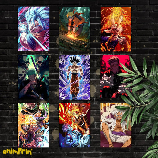 Anime Posters, Set of 10 Anime posters for wall, A4 Size |Anime Posters For Gaming Room, Various Anime characters (Multicolor)